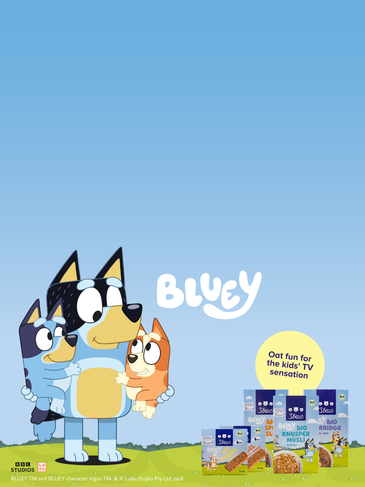 The time has finally come: We can introduce you to our new Bluey x 3Bears organic product range. Yeaah!