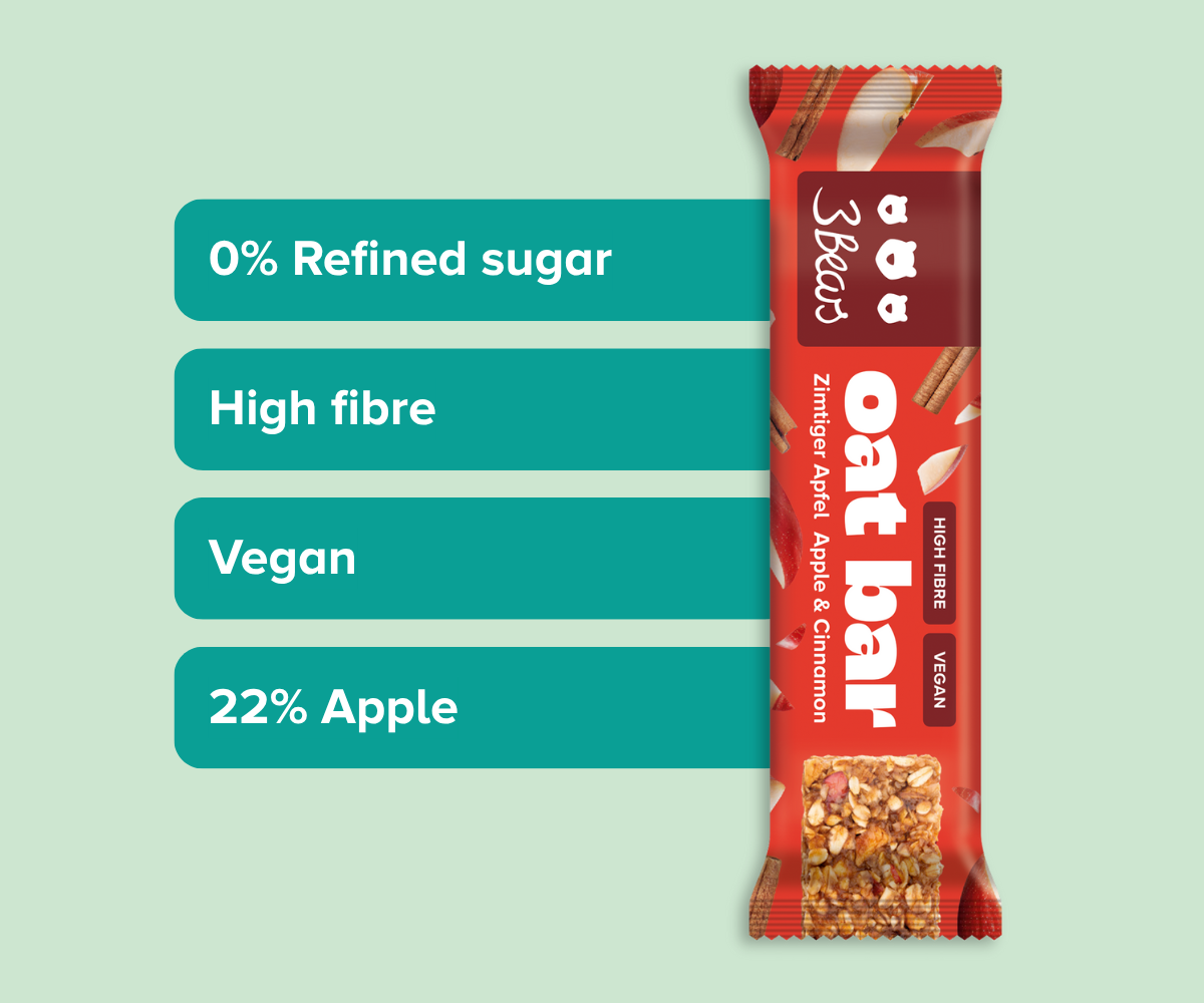 We founded 3Bears in 2016 because we were frustrated with how much sugar was in so many foods. We brought porridge to Germany because we think it's the perfect basis for a wholesome breakfast. You can now get pretty much everything to do with oats from us: overnight oats, bars, granola and accessories. And you can trust us to always stick to our principles. Our products contain no industrial sugar, no additives, they are always 100% plant-based and sustainability is deeply rooted in us.