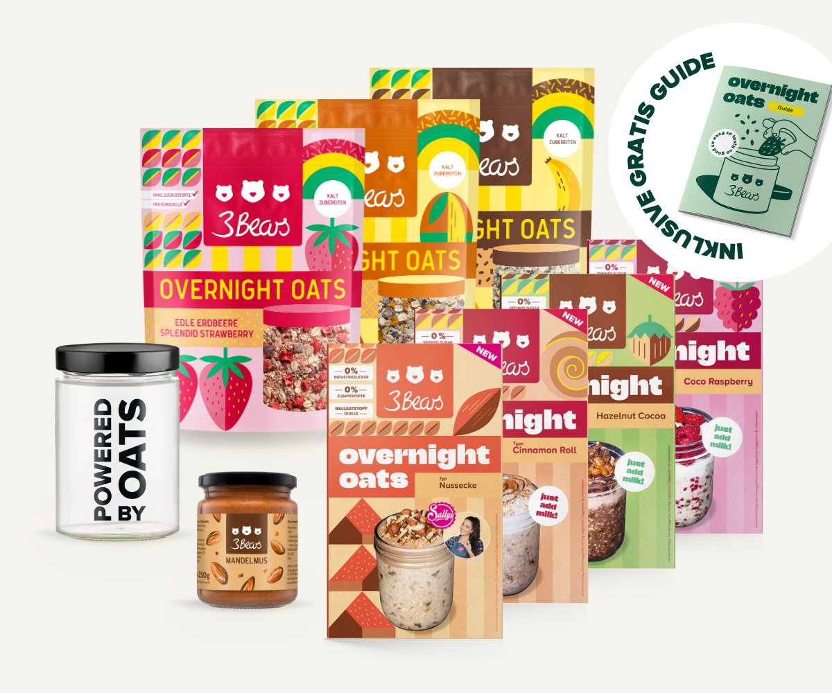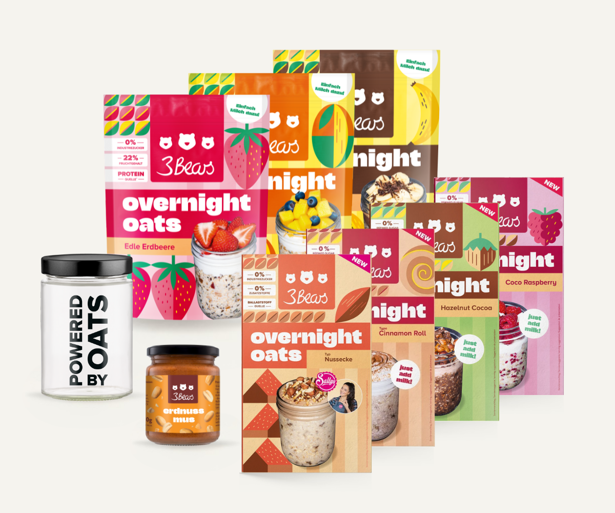 We founded 3Bears in 2016 because we were frustrated by how much sugar was hidden in so many foods. We brought porridge to Germany because for us it makes the perfect, wholesome breakfast. You can now get pretty much everything related to oats from us: overnight oats, bars, granola and accessories. And you can trust us to always stick to our principles. There is no industrial sugar or additives in our products, they are always 100% plant-based and sustainability is deeply rooted in us.