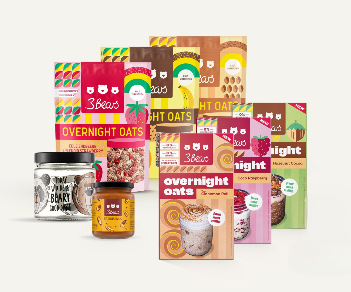 We founded 3Bears in 2016 because we were frustrated with how much sugar was in so many foods. We brought porridge to Germany because we think it's the perfect basis for a wholesome breakfast. You can now get pretty much everything to do with oats from us: overnight oats, bars, granola and accessories. And you can trust us to always stick to our principles. Our products contain no industrial sugar, no additives, they are always 100% plant-based and sustainability is deeply rooted in us.