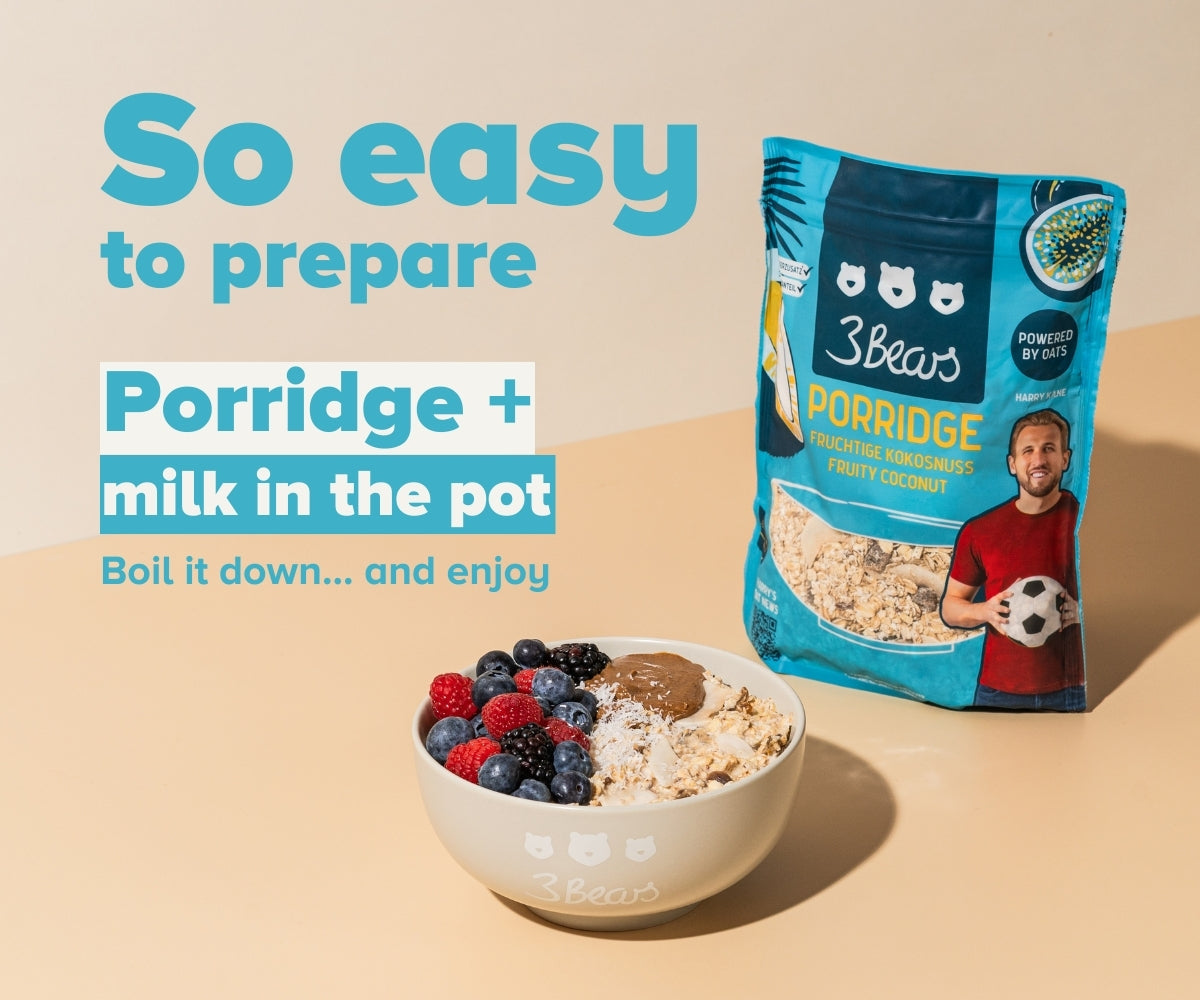 3Bears Porridge is known for its high-quality ingredients and diverse flavors. All products are free from industrial sugar and artificial additives. We rely on natural sweetness from fruit and a balanced mix of oat flakes and other delicious ingredients.
