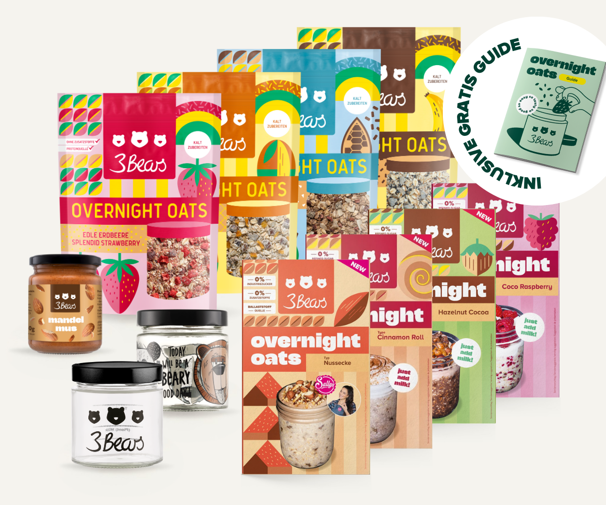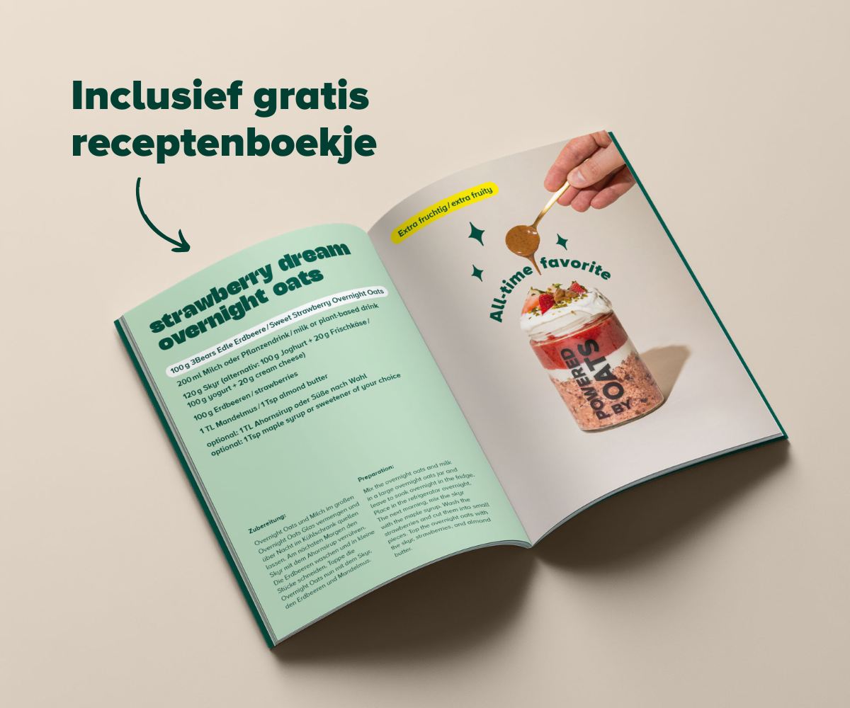We hebben 3Bears in 2016 opgericht omdat we gefrustreerd waren door de hoeveelheid suiker die in zoveel voedingsmiddelen verborgen zat. We hebben pap naar Duitsland gebracht omdat het voor ons het perfecte, gezonde ontbijt is. Je kunt nu vrijwel alles wat met haver te maken heeft bij ons krijgen: overnight oats, repen, granola en accessoires. En u kunt erop vertrouwen dat wij ons altijd aan onze principes houden. Er zitten geen industriële suikers of additieven in onze producten, ze zijn altijd 100% plantaardig en duurzaamheid zit diep in ons geworteld.