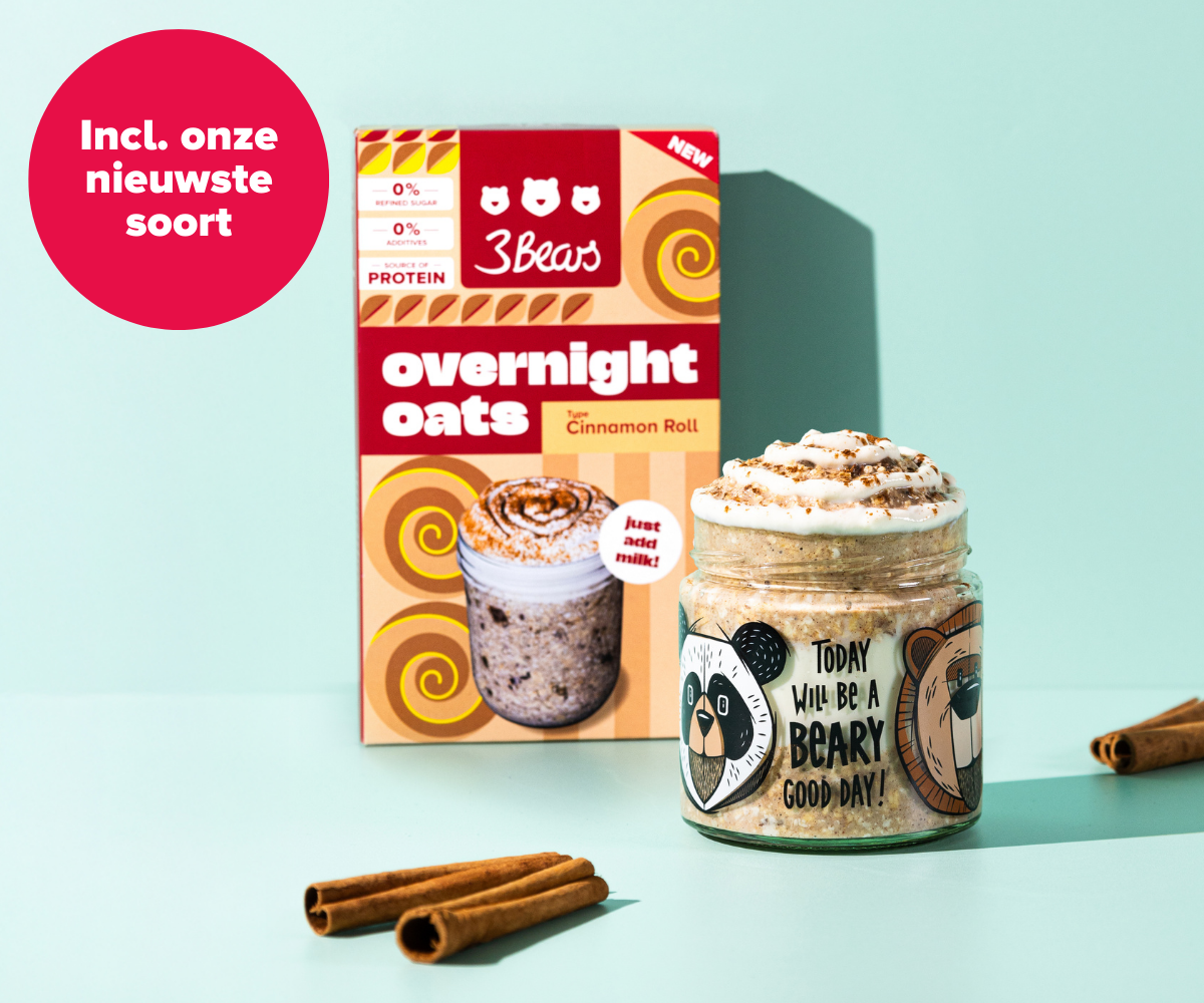 Onze Cinnamon Roll Overnight Oats brengen je het perfecte gezellige herfstgevoel in een glas – romig, kaneelachtig en onweerstaanbaar lekker. Als een kaneelbroodje om te lepelen, natuurlijk gezoet en met een superkorte ingrediëntenlijst. Of het nu voor het ontbijt, als tussendoortje of voor onderweg is – Cinnamon Rolls zijn altijd de juiste keuze.Ingrediënten en voedingswaarden