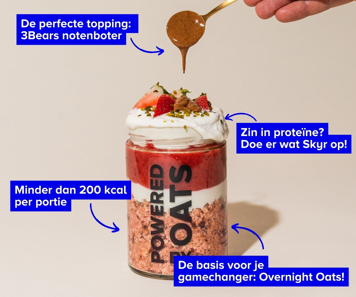 Eigenlijk maakt de grootte voor ons helemaal niet uit. Maar voor ons nieuwe Overnight Oats gadget maken we een uitzondering. Nu geldt: “GO BIG” met ons nieuwe extra grote glas. Jullie hebben er zo vaak om gevraagd en nu hebben we geleverd. In dit nieuwe glas past wel de dubbele hoeveelheid oats! Namelijk 100 g havermout en daarnaast nog veel ruimte voor je favoriete toppings. Geniet vanaf nu van je Overnight Oats in een grotere maat. Perfect voor je meal-prep, onderweg of na het sporten. Eigenlijk maakt het niet uit, zolang er maar meer oats in zitten, zouden wij zeggen.Verzorgingstips