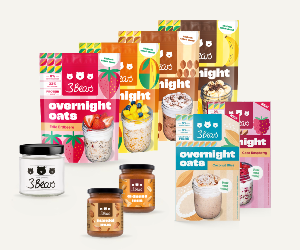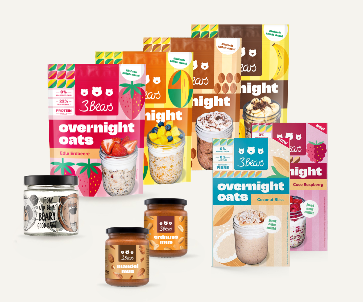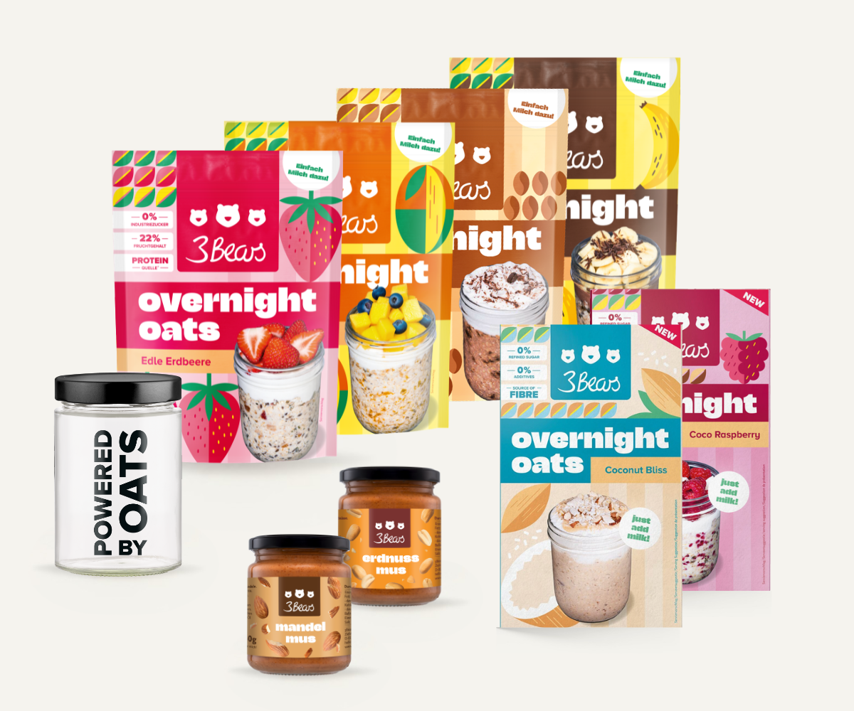 We hebben 3Bears in 2016 opgericht omdat we gefrustreerd waren door de hoeveelheid suiker die in zoveel voedingsmiddelen verborgen zat. We hebben pap naar Duitsland gebracht omdat het voor ons het perfecte, gezonde ontbijt is. Je kunt nu vrijwel alles wat met haver te maken heeft bij ons krijgen: overnight oats, repen, granola en accessoires. En u kunt erop vertrouwen dat wij ons altijd aan onze principes houden. Er zitten geen industriële suikers of additieven in onze producten, ze zijn altijd 100% plantaardig en duurzaamheid zit diep in ons geworteld.